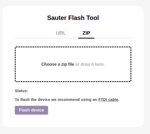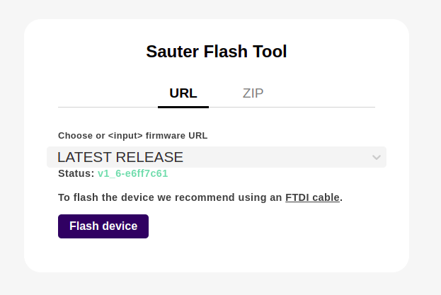 Smart Sensor Dashboard flash tool is available at fms.iot.sauter-cloud.com/flash.