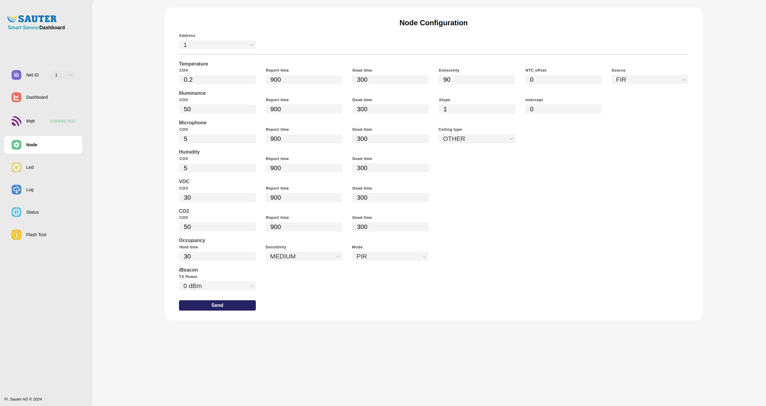 You can configure various properties of the device in the Node card. You can change COV, report time & dead time for each sensor (except for occupancy).