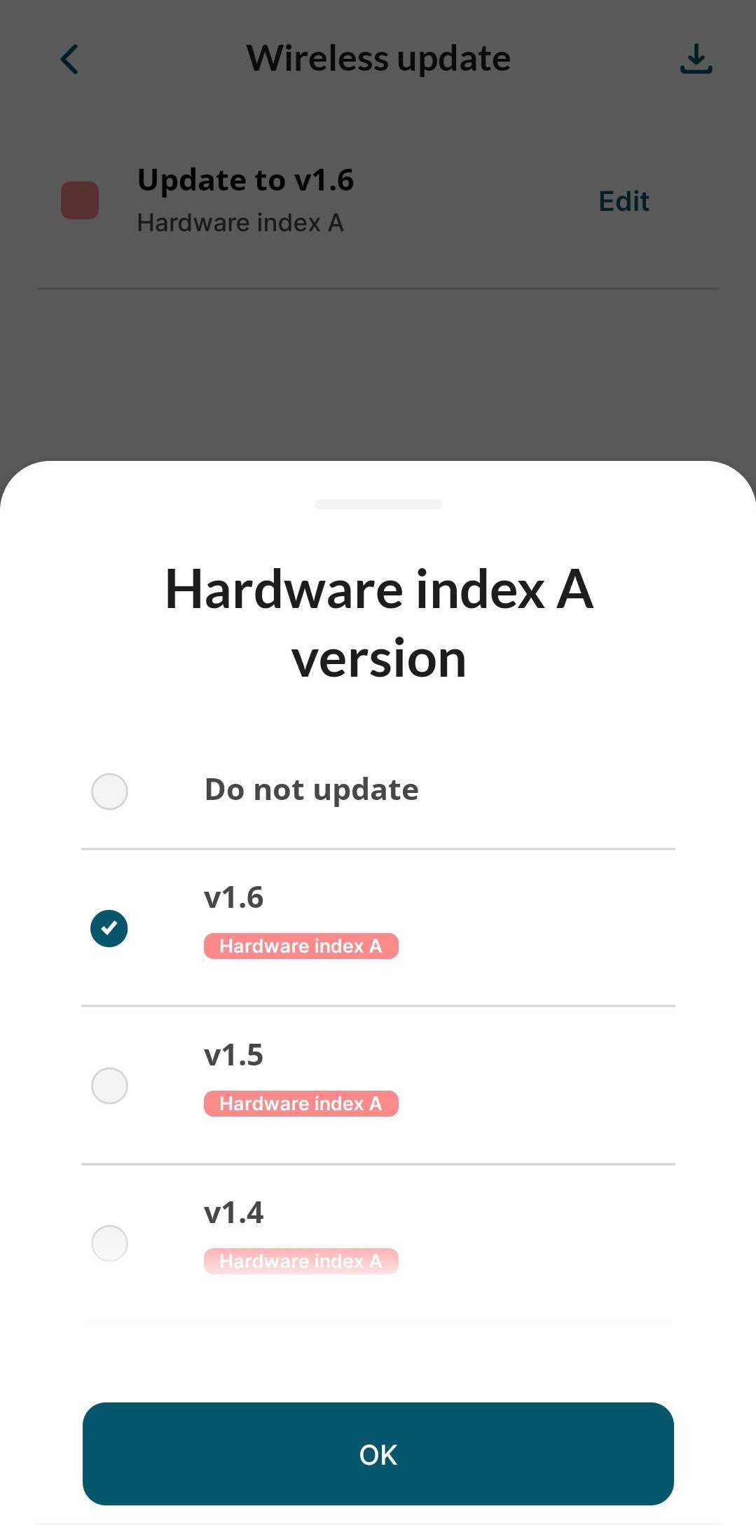 The application will display available firmwares for hardware versions of the devices you have provisioned based on the XML file downloaded from the server. The latest firmware version available for each hardware index will automatically be selected, but if you don't want to update to the latest version, you can select other versions by clicking the "Edit" button.