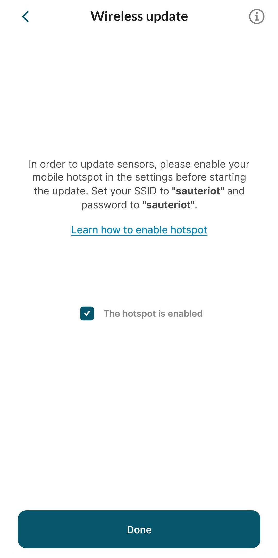 While updating the firmware your hotspot name (SSID) and password should always be sauteriot!